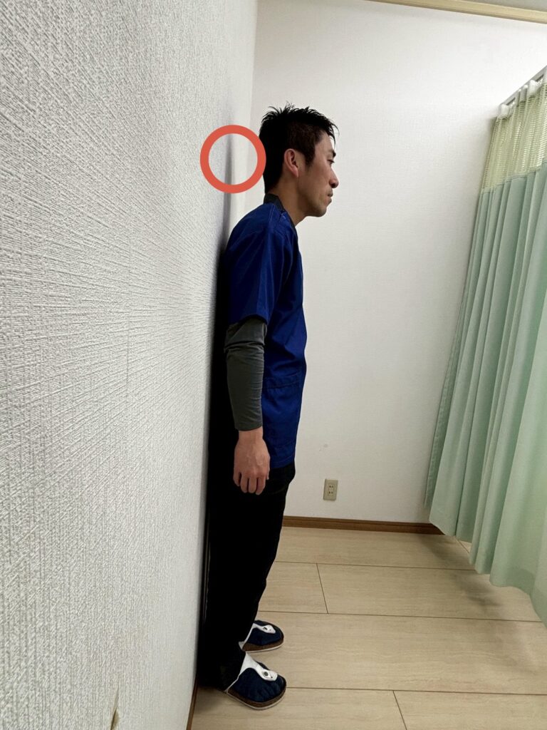 後頭部を壁につけるのが苦しい、または顎が上がってしまう。